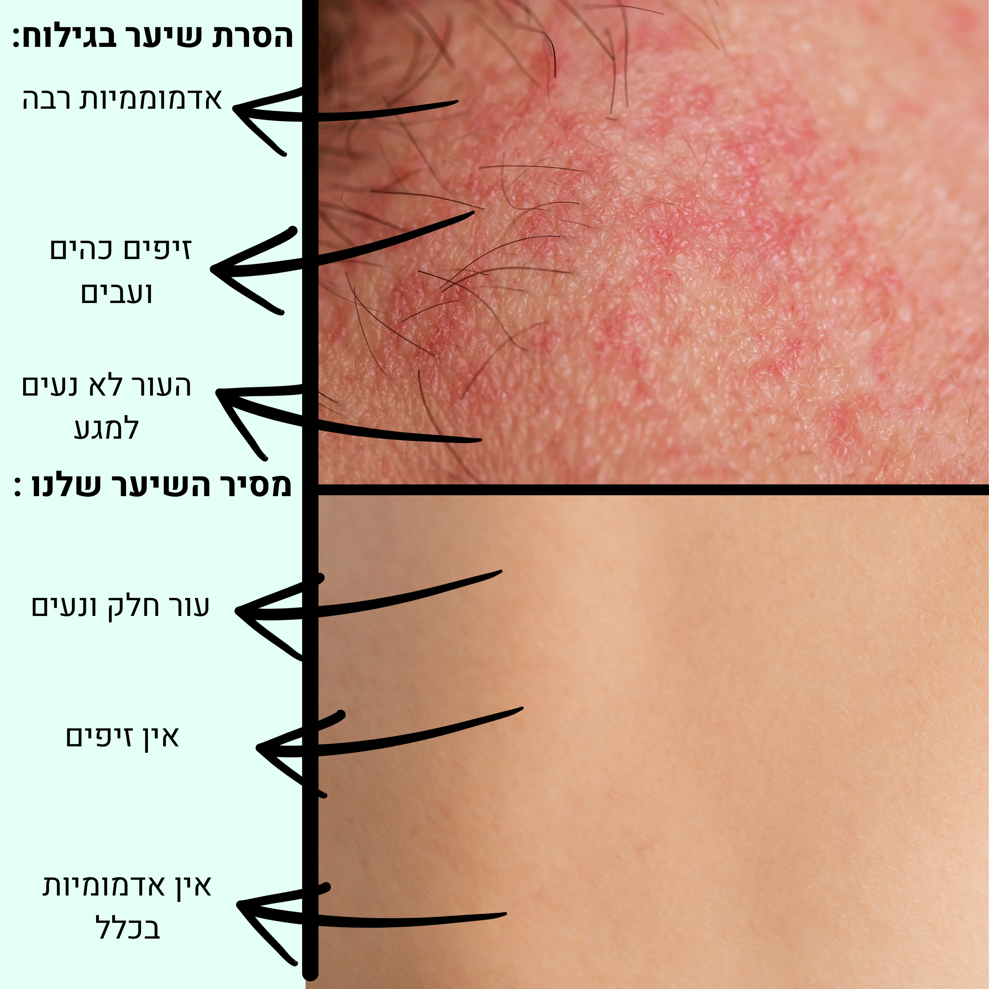 * בניגוד לשעווה או פינצטה, כאן אין משיכה, דמעות או צריבה.